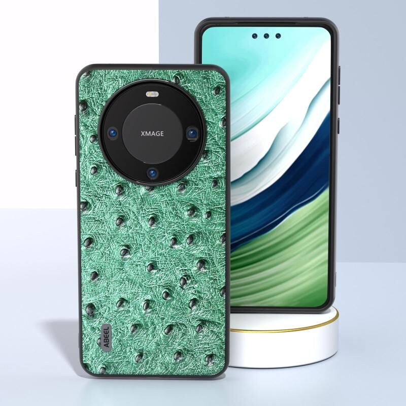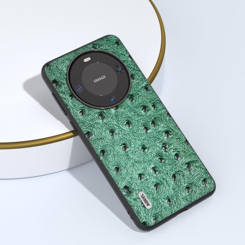 Θήκη τηλεφώνου από γνήσιο δέρμα στρουθοκάμπου για Huawei Mate 60 Pro ABEEL (Πράσινο)