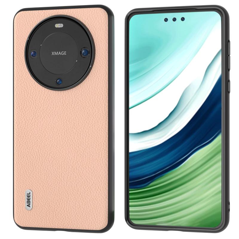 For Huawei Mate 60 Pro ABEEL Genuine Leather + PC Litchi Texture Phone Case(Pink Gold)