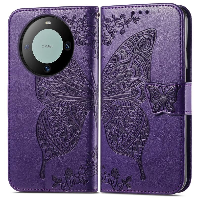Θήκη τηλεφώνου Huawei Mate 60 Pro Butterfly Love Flower Embossed Leather (Μαύρο)