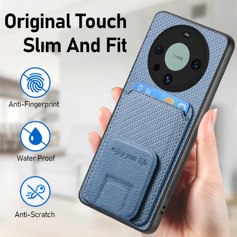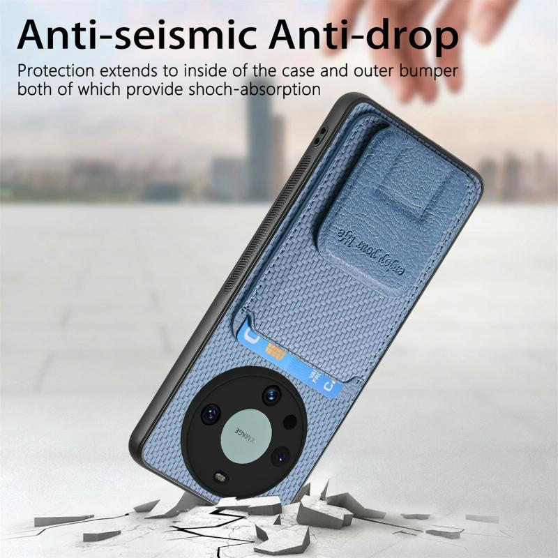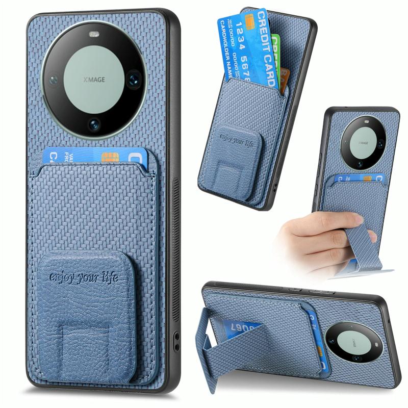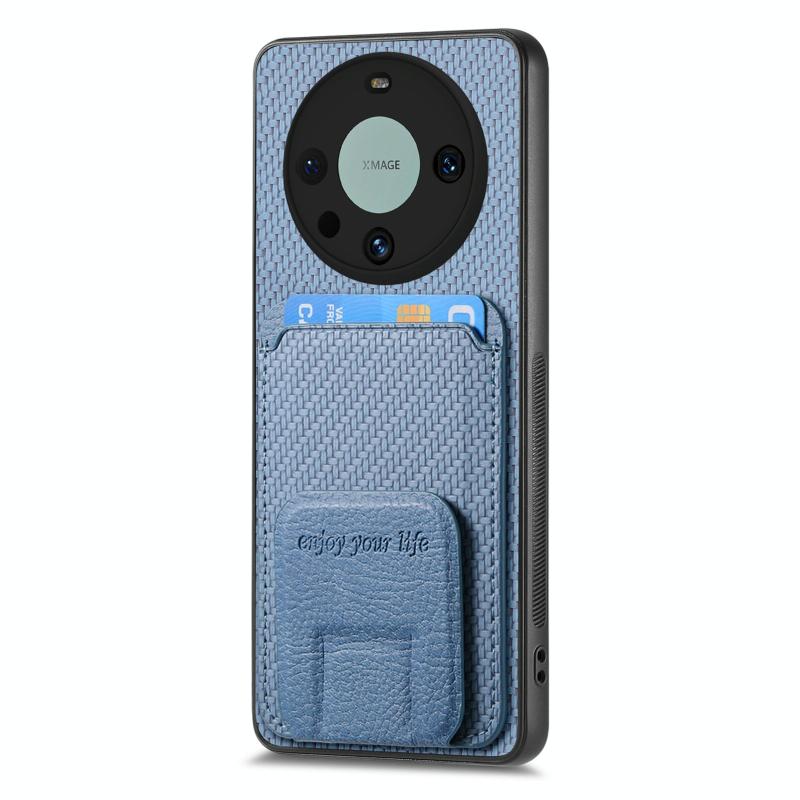 For Huawei Mate 60 Pro Carbon Fiber Card Bag Fold Stand Phone Case(Blue)