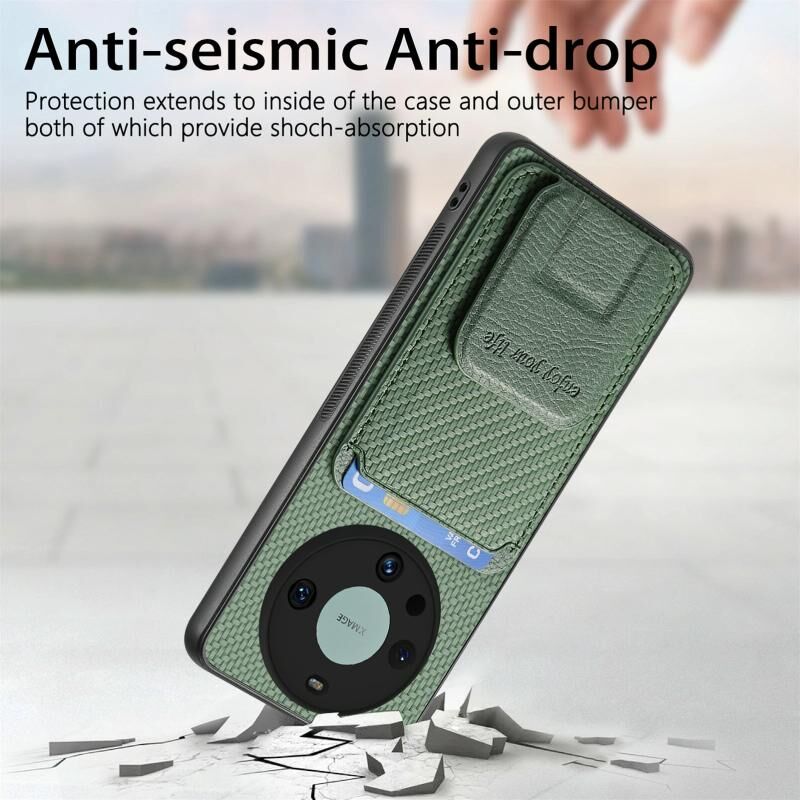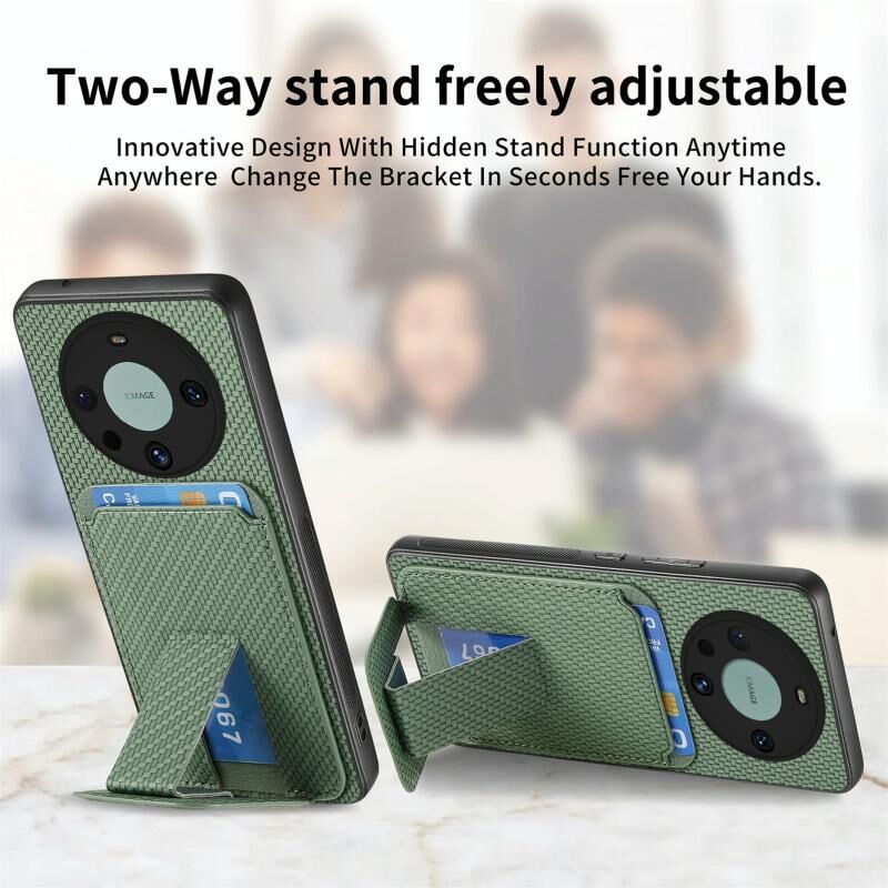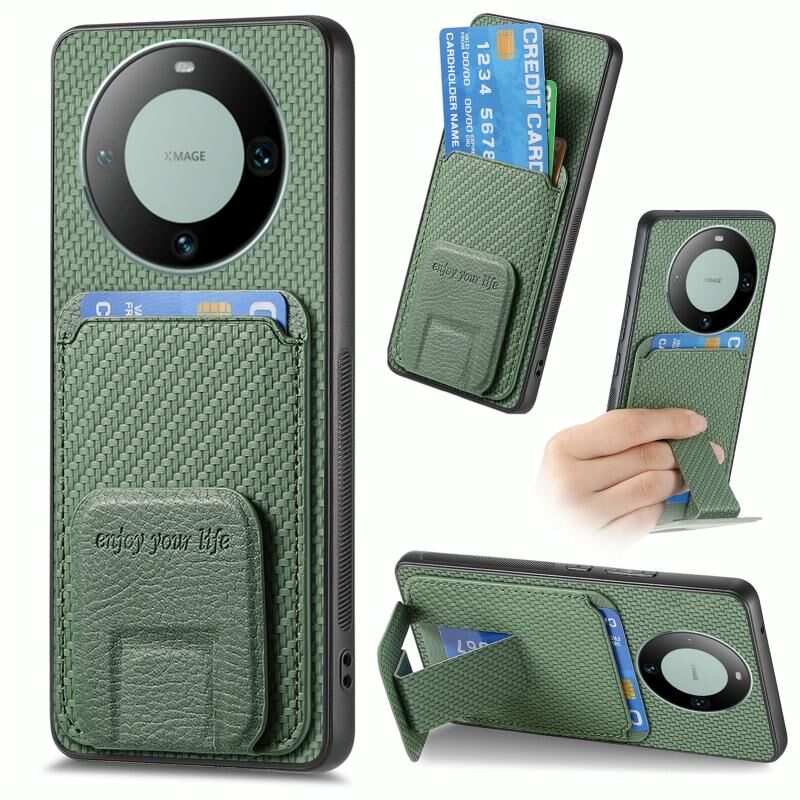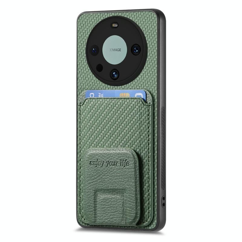 Θήκη τηλεφώνου για Huawei Mate 60 Pro Carbon Fiber Card Bag Fold Stand (Μπλε)