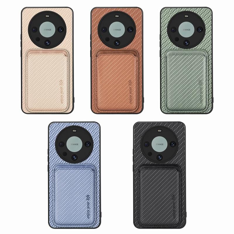 Για Huawei Mate 60 Pro Carbon Fiber Δερμάτινη κάρτα μαγνητική υπόθεση τηλεφώνου (πράσινο)
