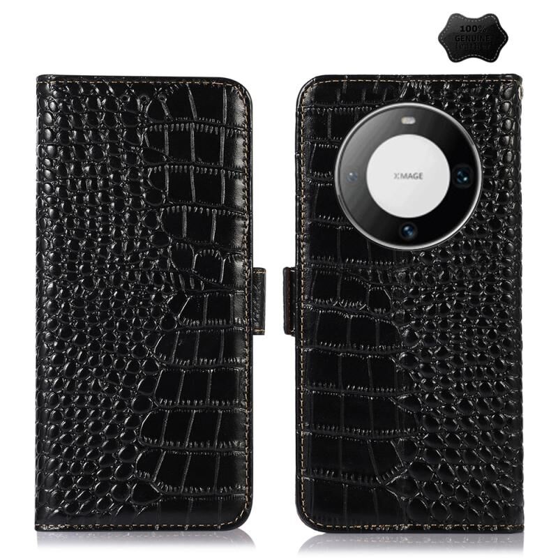 Θήκη τηλεφώνου από γνήσιο δέρμα αγελάδας Crocodile Top Layer για Huawei Mate 60 Pro (Μαύρο)