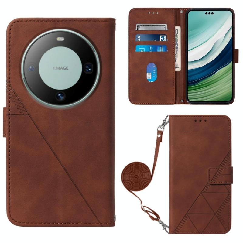 For Huawei Mate 60 Pro Crossbody 3D Embossed Flip Leather Phone Case(Brown)