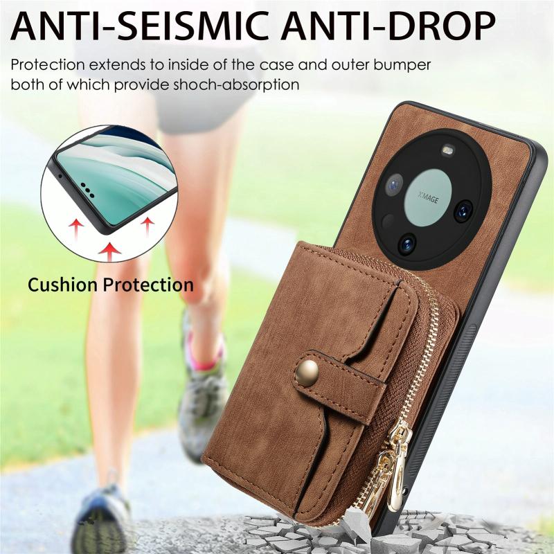 Θήκη τηλεφώνου Huawei Mate 60 Pro με ιμάντα ώμου, πολλαπλών λειτουργιών, με φερμουάρ και πορτοφόλι (Ροζ)