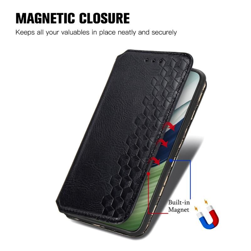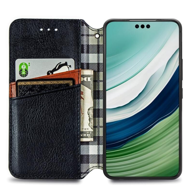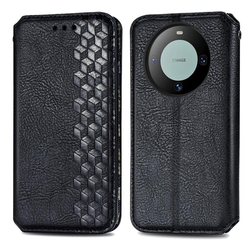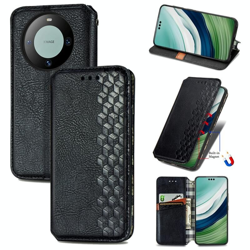 Για το Huawei Mate 60 Pro Cubic Grid Pressed μαγνητική δερμάτινη θήκη τηλεφώνου (μαύρο)