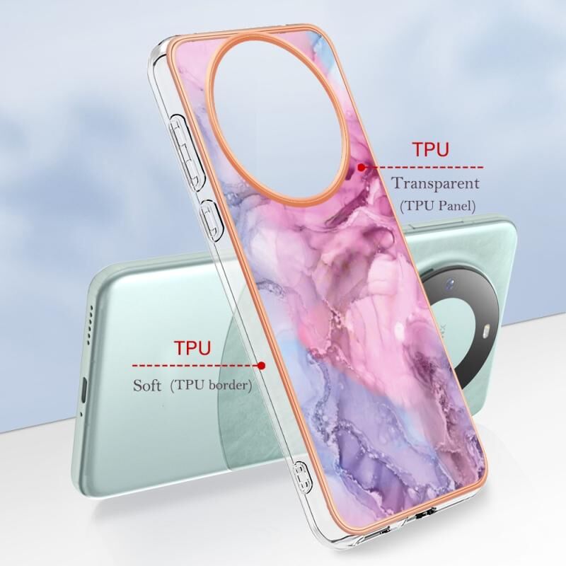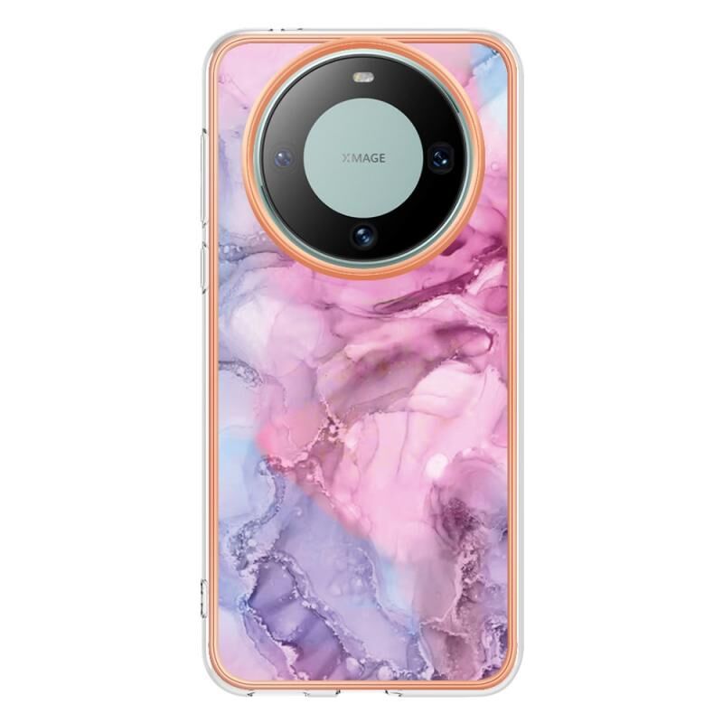 Θήκη τηλεφώνου Huawei Mate 60 Pro Electroplating Marble IMD διπλής όψης (Ροζ 013)