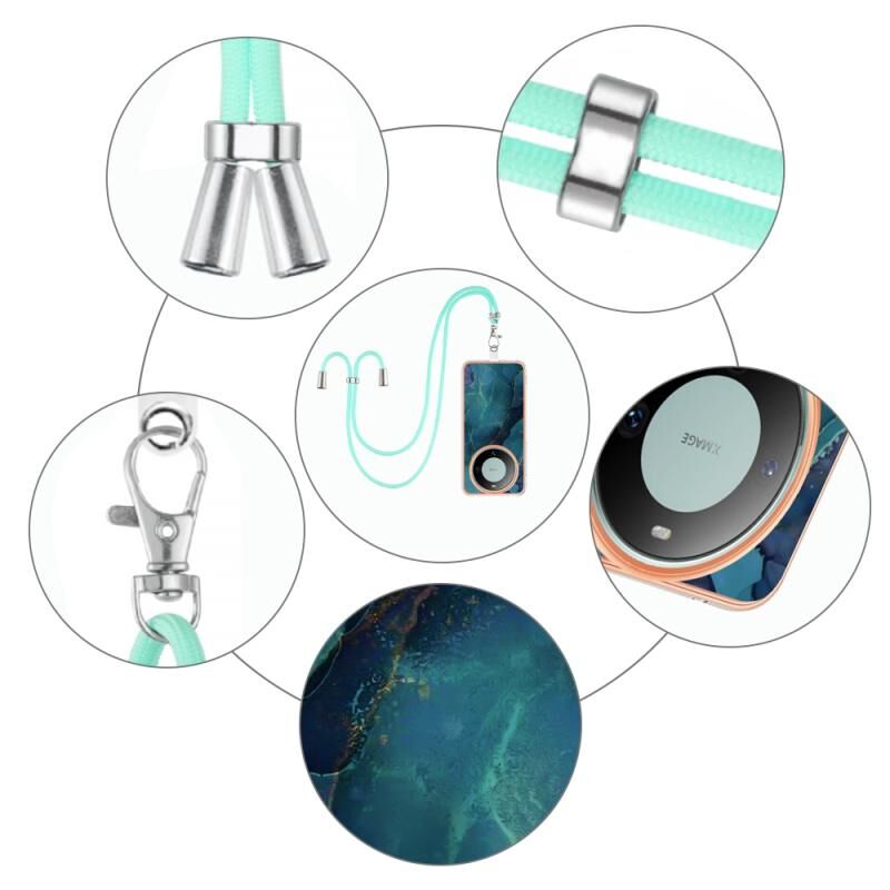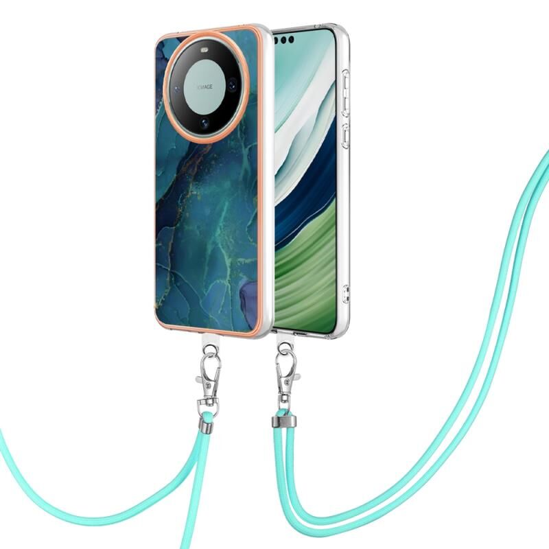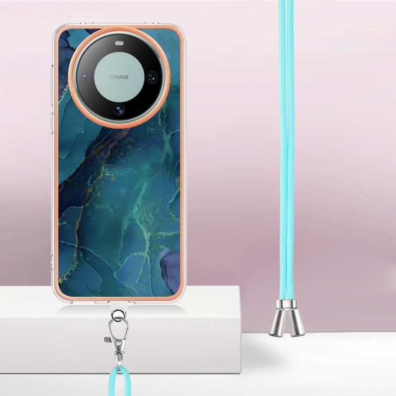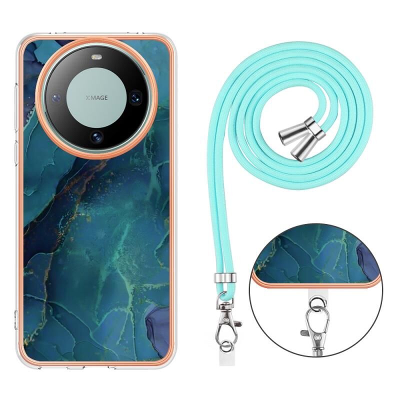 Θήκη τηλεφώνου Huawei Mate 60 Pro με επιμετάλλωση, σχέδιο μάρμαρου, διπλής όψης IMD με κορδόνι (Μωβ 001)