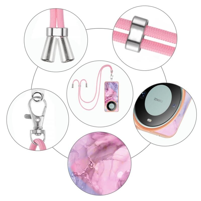 Θήκη τηλεφώνου Huawei Mate 60 Pro με επιμετάλλωση, σχέδιο μάρμαρου, διπλής όψης IMD με κορδόνι (Μωβ 001)