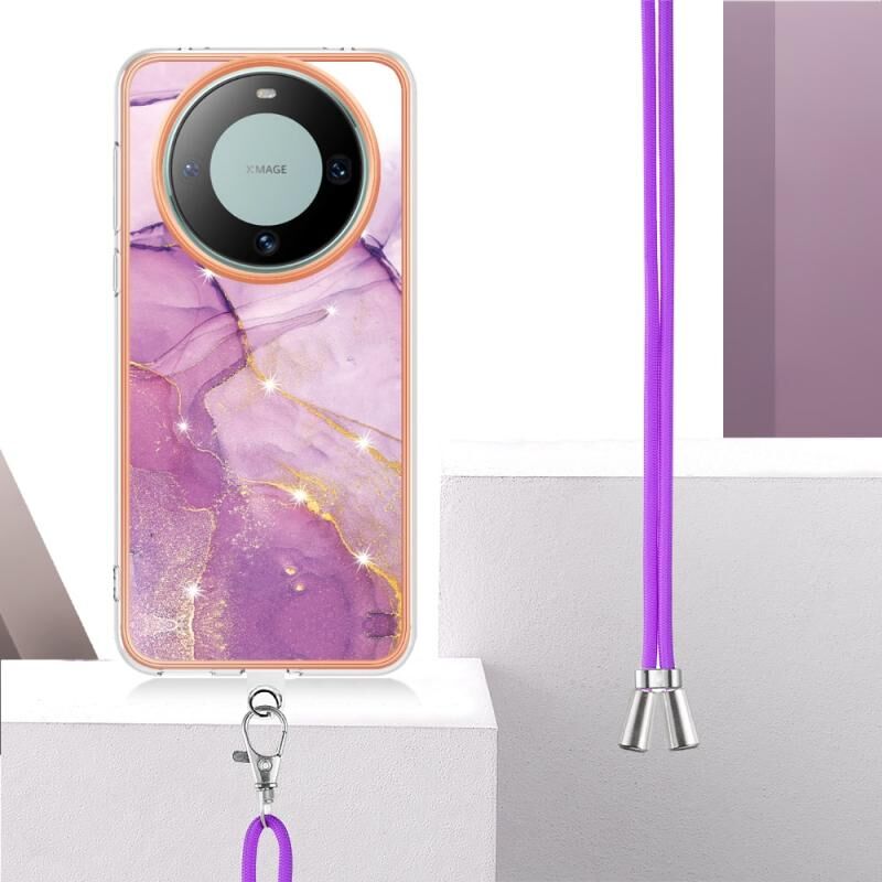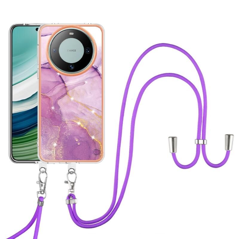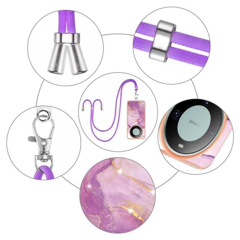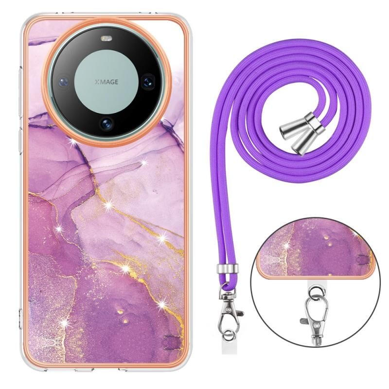 Θήκη τηλεφώνου Huawei Mate 60 Pro με επιμετάλλωση, σχέδιο μάρμαρου, διπλής όψης IMD με κορδόνι (Μωβ 001)