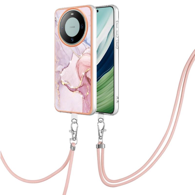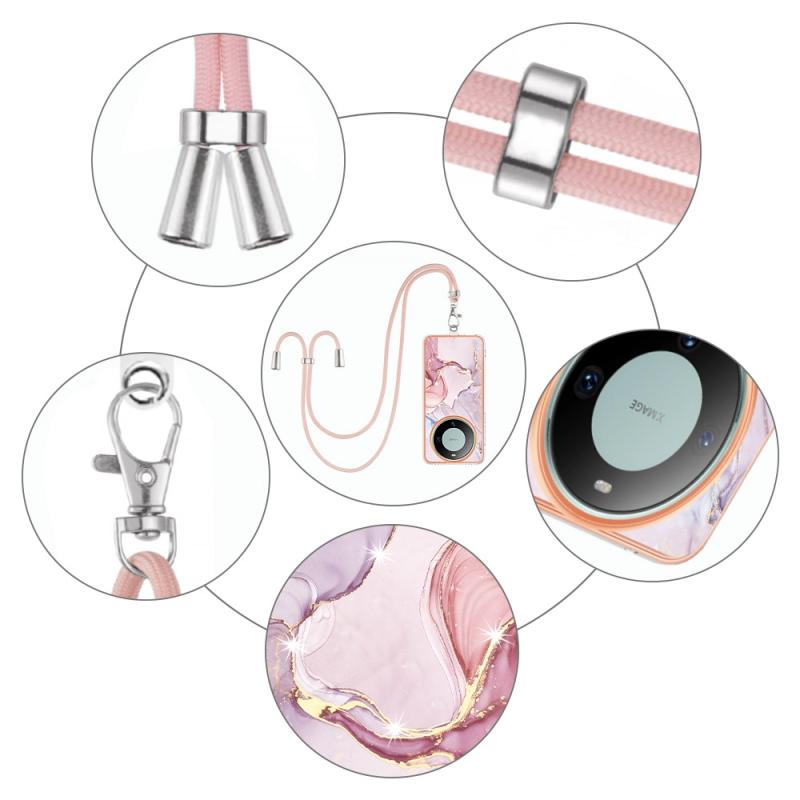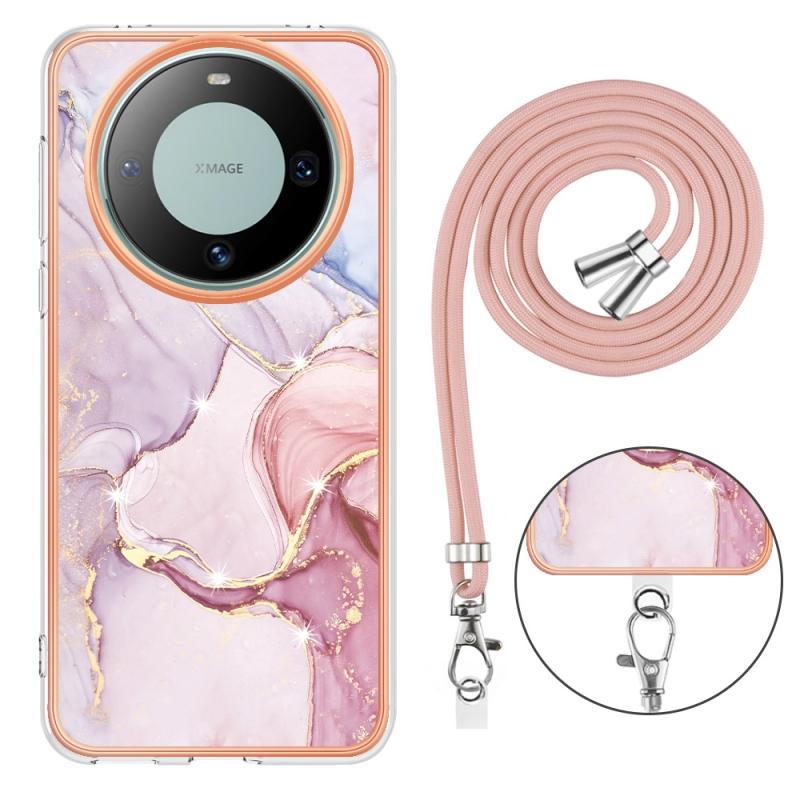 For Huawei Mate 60 Pro Electroplating Marble Dual-side IMD Phone Case with Lanyard(Rose Gold 005)