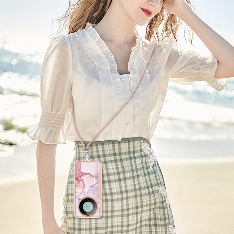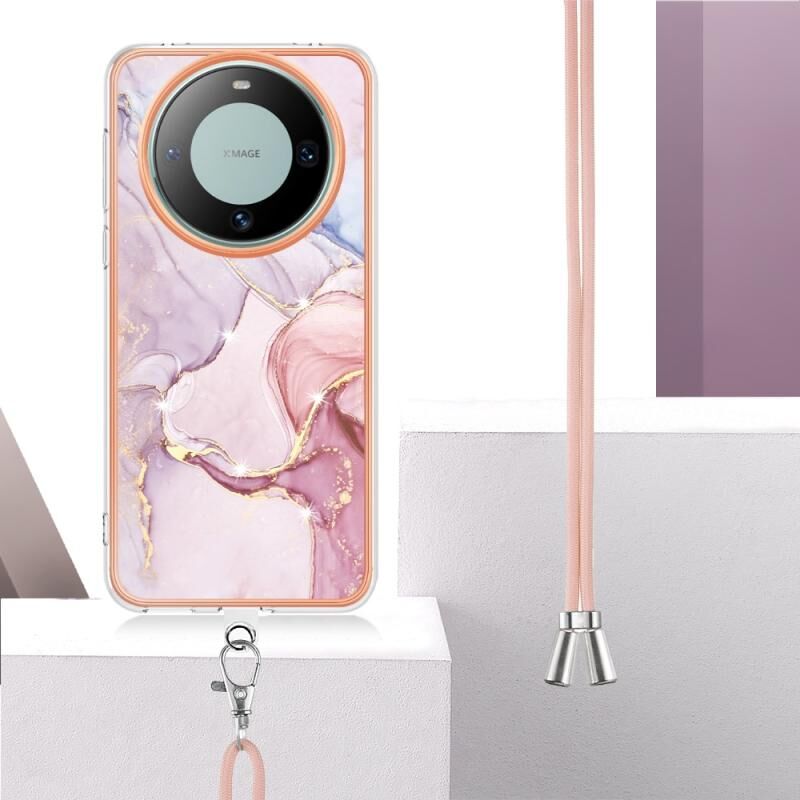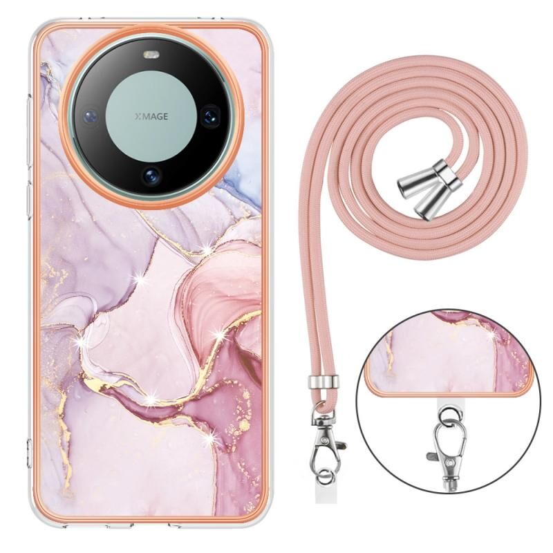 Θήκη τηλεφώνου Huawei Mate 60 Pro με επιμετάλλωση, σχέδιο μάρμαρου, διπλής όψης IMD με κορδόνι (Μωβ 001)