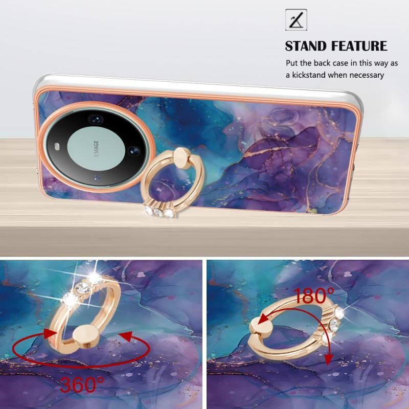 Θήκη τηλεφώνου Huawei Mate 60 Pro με ηλεκτρολυτική μαρμάρινη όψη IMD διπλής όψης με δαχτυλίδι (Μωβ 016)
