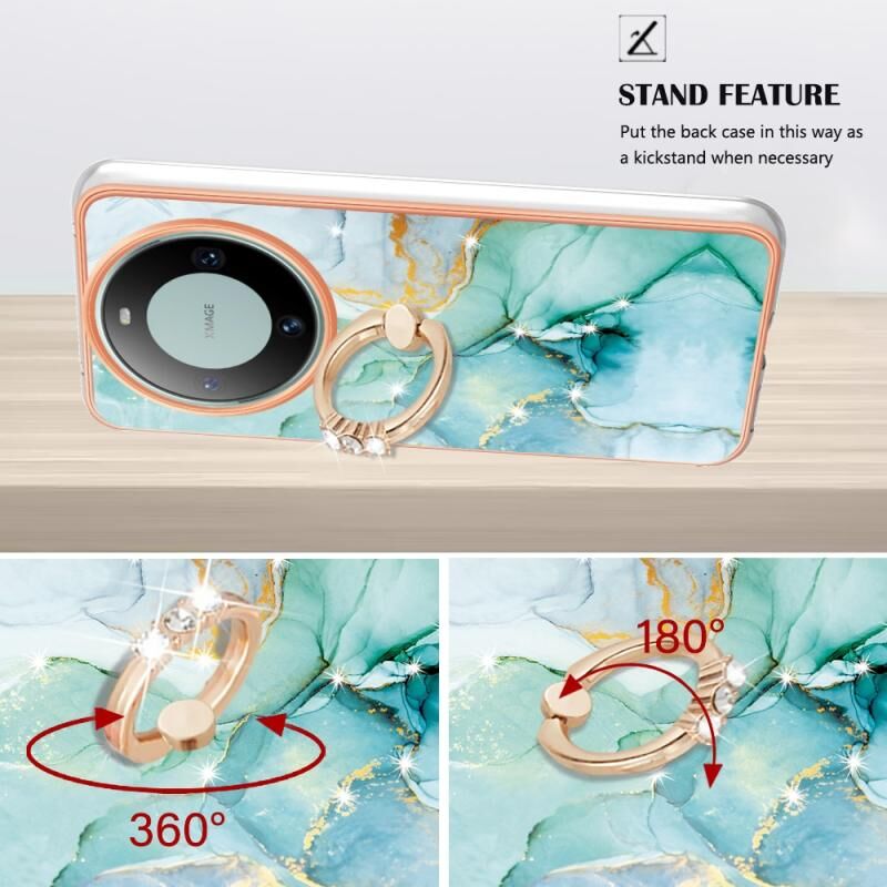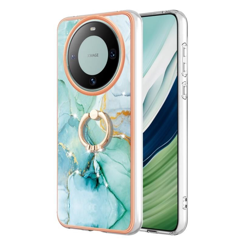 Θήκη κινητού τηλεφώνου Huawei Mate 60 Pro με ηλεκτρολυτική μαρμάρινη τεχνολογία IMD TPU και δακτύλιο στήριξης (Πράσινο 003)