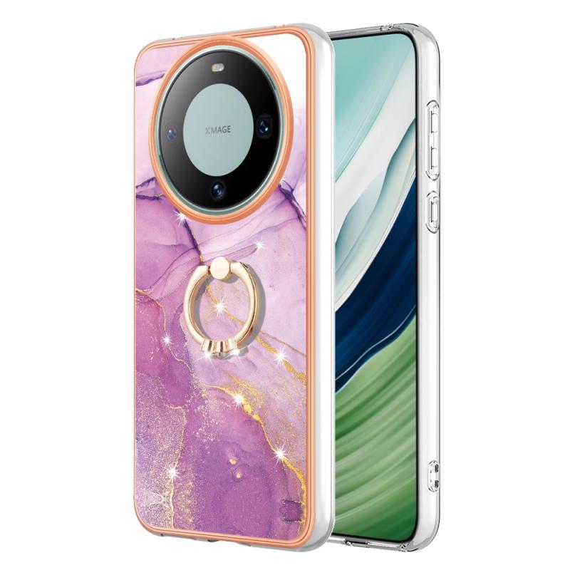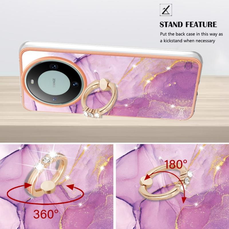 For Huawei Mate 60 Pro Electroplating Marble IMD TPU Phone Case with Ring Holder(Purple 001)