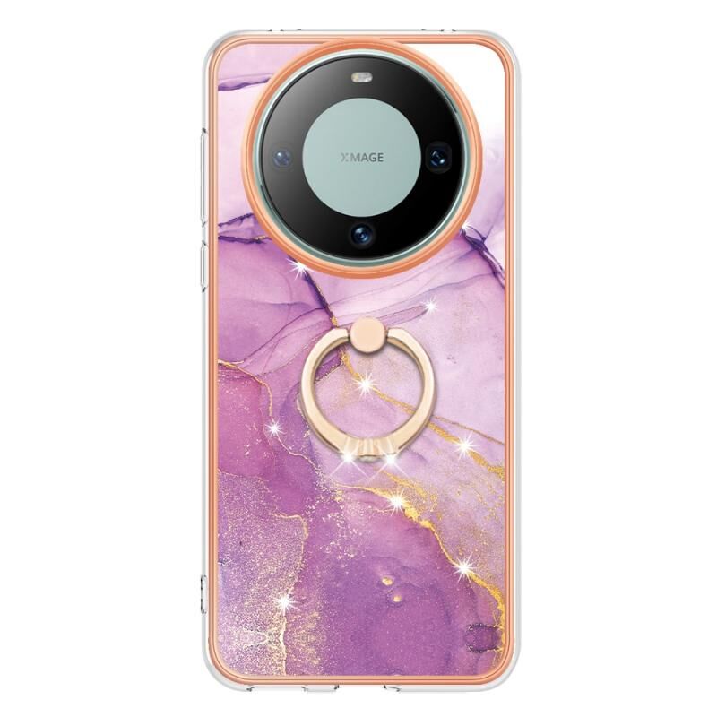 Θήκη κινητού τηλεφώνου Huawei Mate 60 Pro με ηλεκτρολυτική μαρμάρινη τεχνολογία IMD TPU και δακτύλιο στήριξης (Μωβ 001)