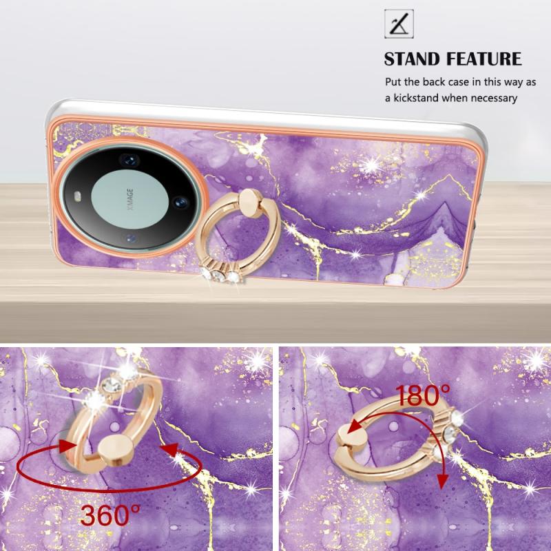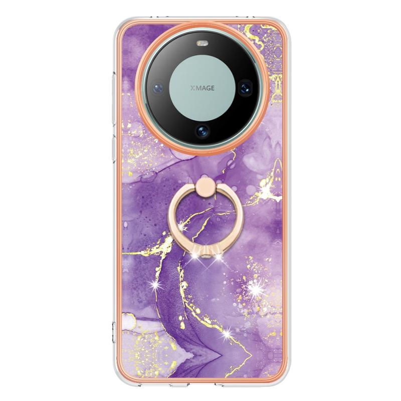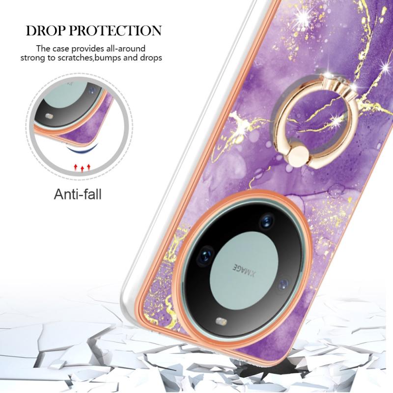 For Huawei Mate 60 Pro Electroplating Marble IMD TPU Phone Case with Ring Holder(Purple 002)