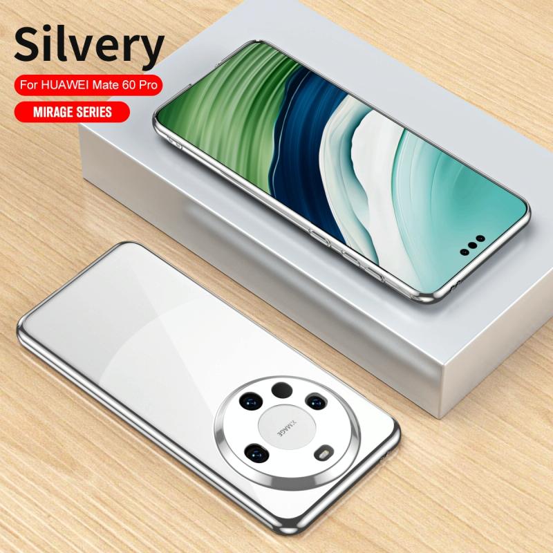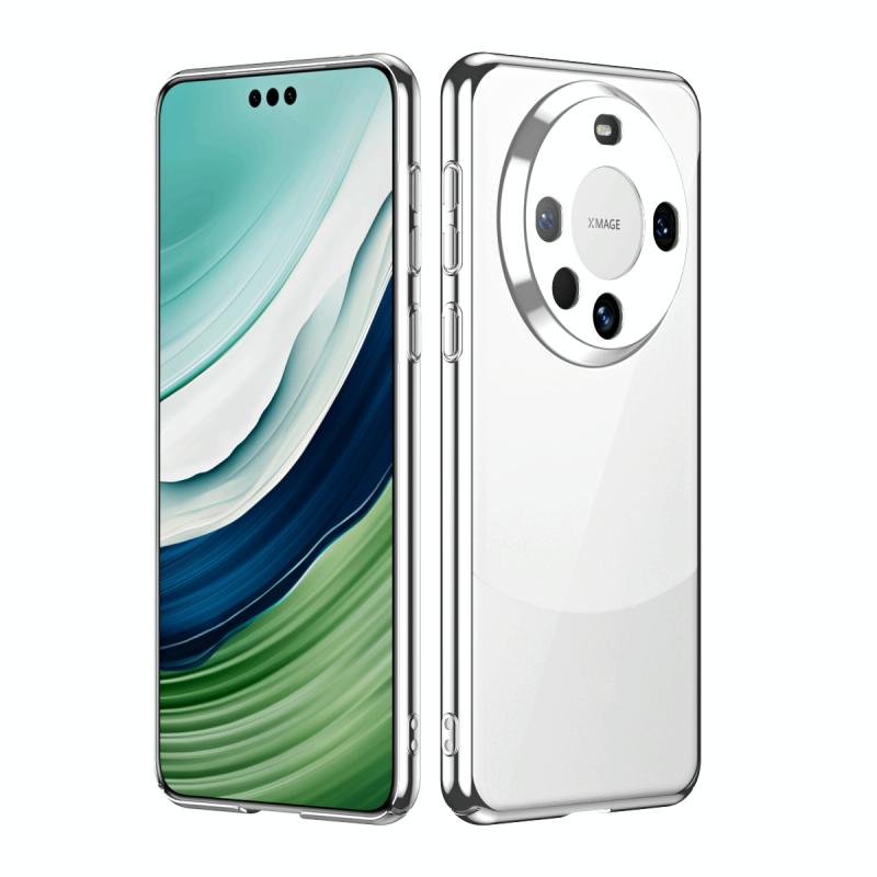Θήκη τηλεφώνου για Huawei Mate 60 Pro με ηλεκτρολυτική επίστρωση, διαφανή προστασία φακού (Ασημί)