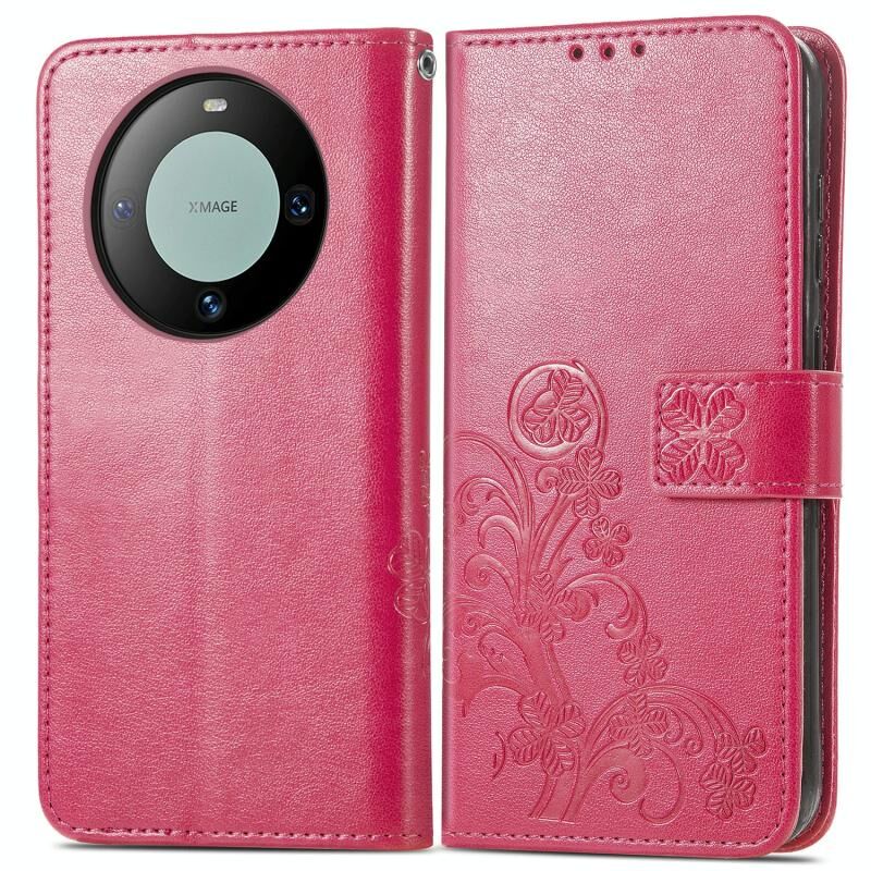 Για το Huawei Mate 60 Pro τετράφυλλο κούμπωμα ανάγλυφη δερμάτινη θήκη τηλεφώνου (κόκκινο)