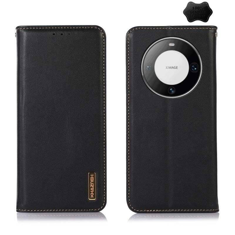 Θήκη τηλεφώνου Huawei Mate 60 Pro KHAZNEH Nappa από γνήσιο δέρμα αγελάδας (Μαύρο)