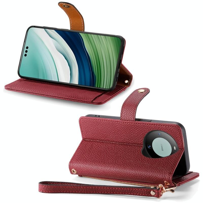 Για το Huawei Mate 60 Pro Love φερμουάρ Lanyard δερμάτινη θήκη τηλεφώνου (Κόκκινο)