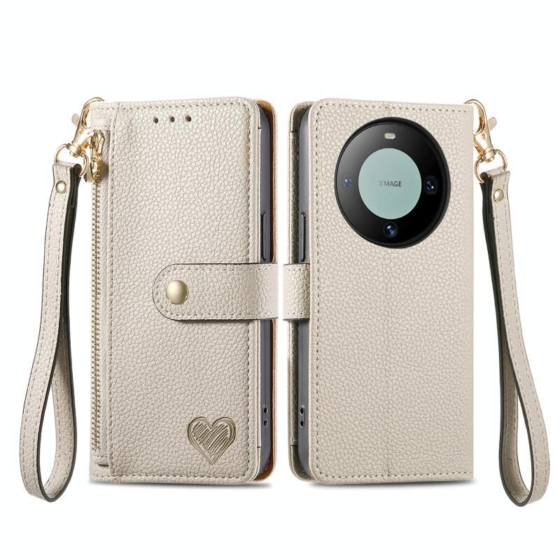 Για το Huawei Mate 60 Pro Love φερμουάρ Lanyard δερμάτινη θήκη τηλεφώνου (Λευκό)