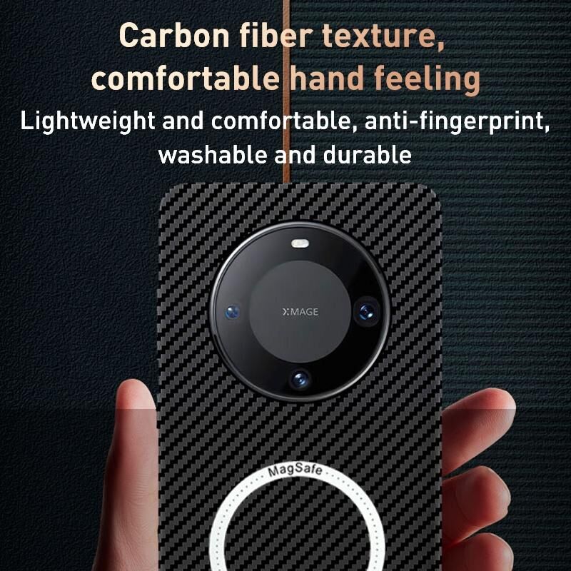 Θήκη τηλεφώνου για Huawei Mate 60 Pro Μαγνητική, από ανθρακονήματα, αντικραδασμική (Μαύρο Γκρι)