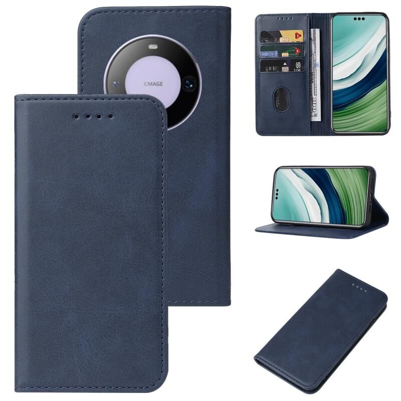 Για Huawei Mate 60 Pro Μαγνητικό κλείσιμο δερμάτινη θήκη τηλεφώνου (Μπλε)