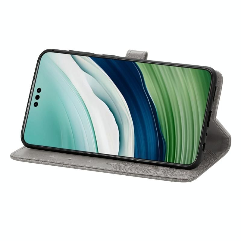 Για Huawei Mate 60 Pro Mandala λουλούδι ανάγλυφο δερμάτινη θήκη τηλεφώνου (γκρι)