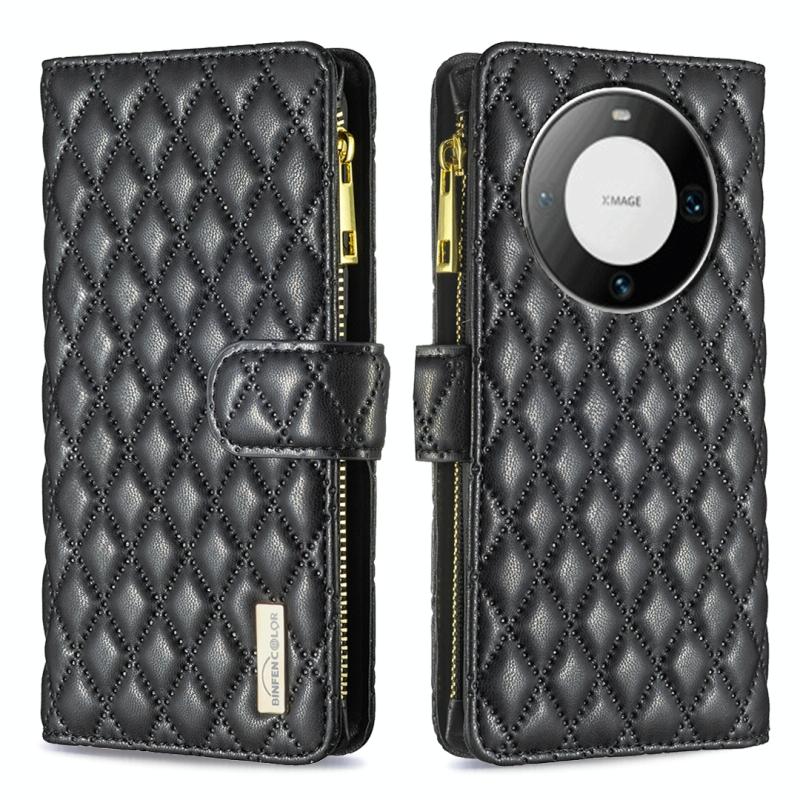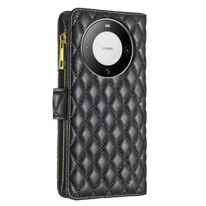 For Huawei Mate 60 Pro/Mate 60 Pro+ Diamond Lattice Zipper Wallet Leather Flip Phone Case(Black)