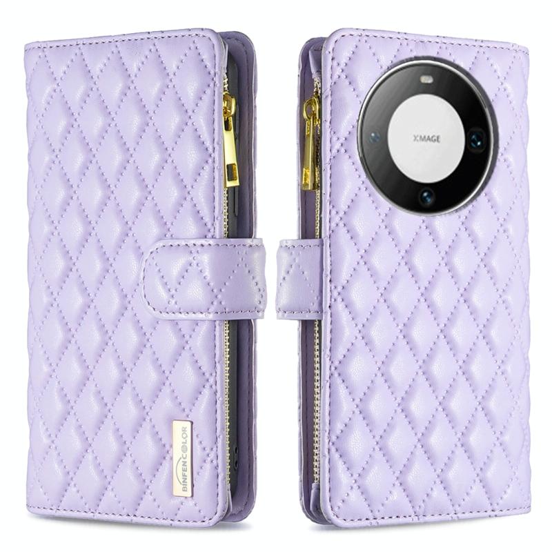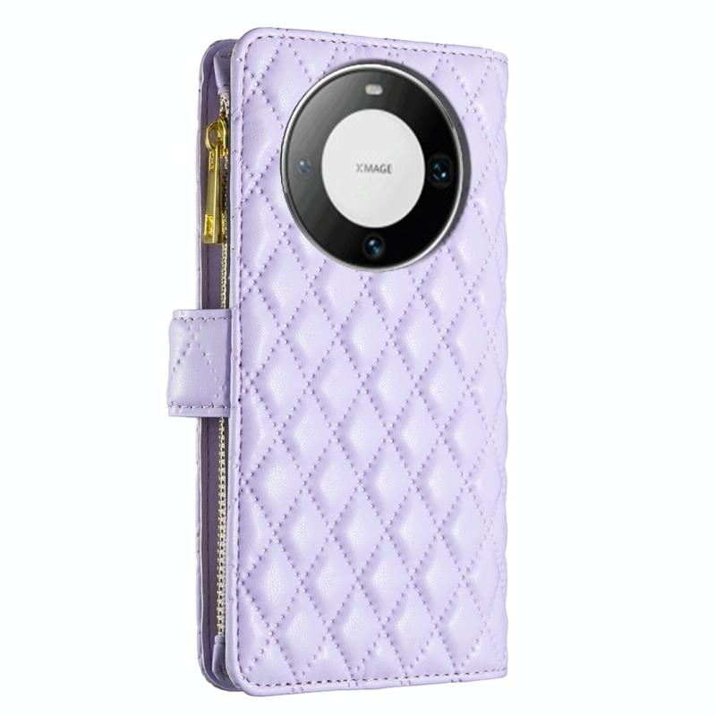 For Huawei Mate 60 Pro/Mate 60 Pro+ Diamond Lattice Zipper Wallet Leather Flip Phone Case(Purple)