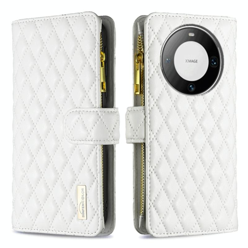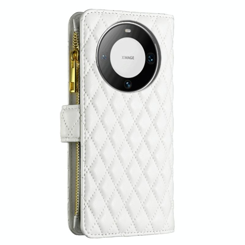 For Huawei Mate 60 Pro/Mate 60 Pro+ Diamond Lattice Zipper Wallet Leather Flip Phone Case(White)