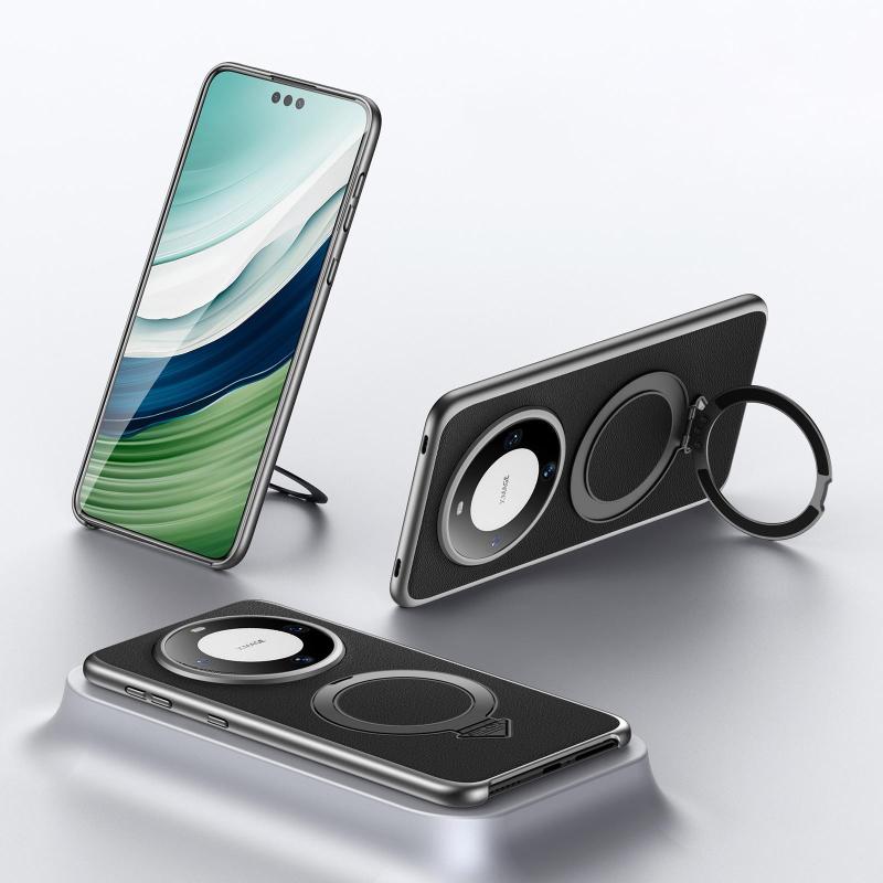 For Huawei Mate 60 Pro / Mate 60 Pro+ SULADA Top Grain Leather MagSafe Magnetic Holder Phone Case(Black) (SULADA)