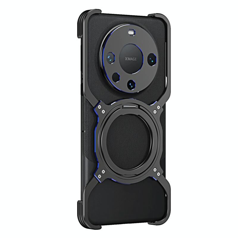 Θήκη τηλεφώνου από μέταλλο για Huawei Mate 60 Pro+ με μαγνητική βάση MagSafe, χωρίς πλαίσιο και με μηχανικό βραχίονα (Ασημί)