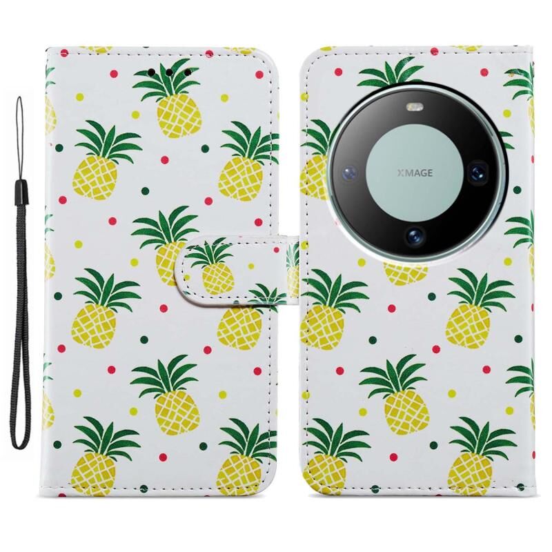Θήκη τηλεφώνου Huawei Mate 60 Pro από δέρμα με οριζόντιο άνοιγμα και ζωγραφιστό σχέδιο (Ανανάς)