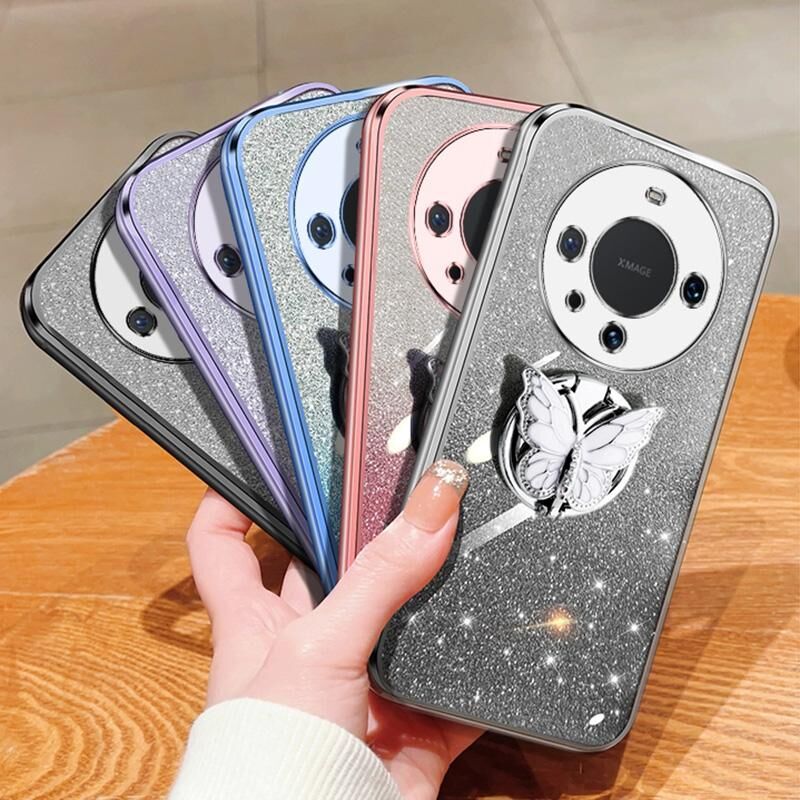 Θήκη κινητού τηλεφώνου Huawei Mate 60 Pro Επικαλυμμένη Διαβαθμισμένη Λάμψη Πεταλούδα TPU (Μπλε Σιέρρα)