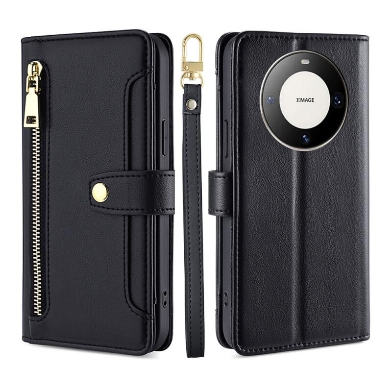 Για Huawei Mate 60 Pro / Pro + Lite Πρόβατα Υφή Cross-body φερμουάρ πορτοφόλι δερμάτινη θήκη τηλεφώνου (μαύρο)