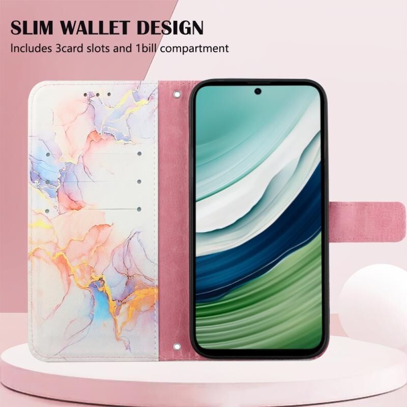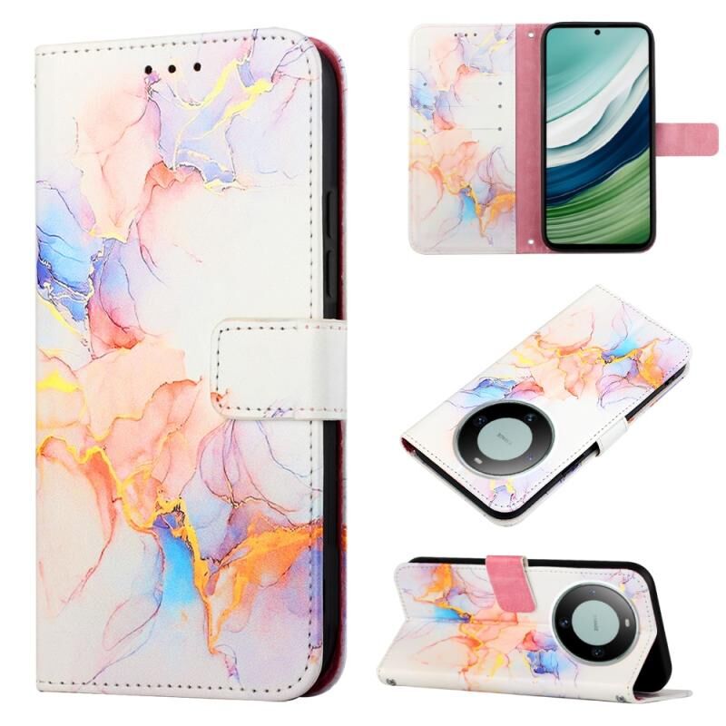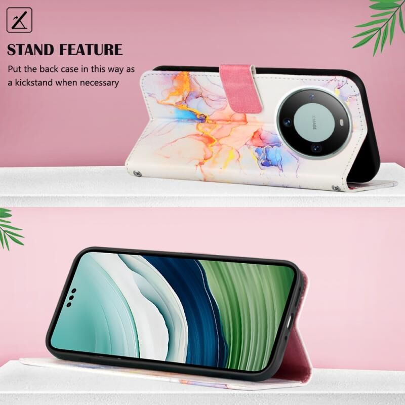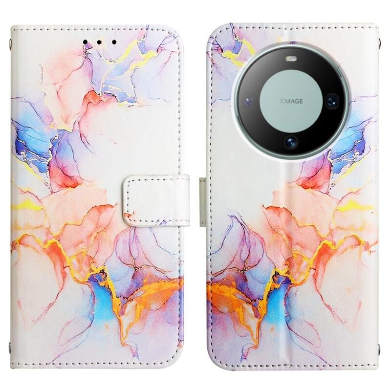 Θήκη τηλεφώνου Huawei Mate 60 Pro PT003 από δέρμα με σχέδιο μαρμάρου και πτυσσόμενο μηχανισμό (Μάρμαρο Λευκό)