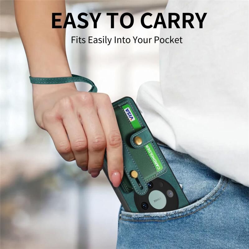 Για Huawei Mate 60 Pro Ρετρό Σταυρός Wristband πορτοφόλι δέρμα πίσω τηλέφωνο υπόθεση (πράσινο)