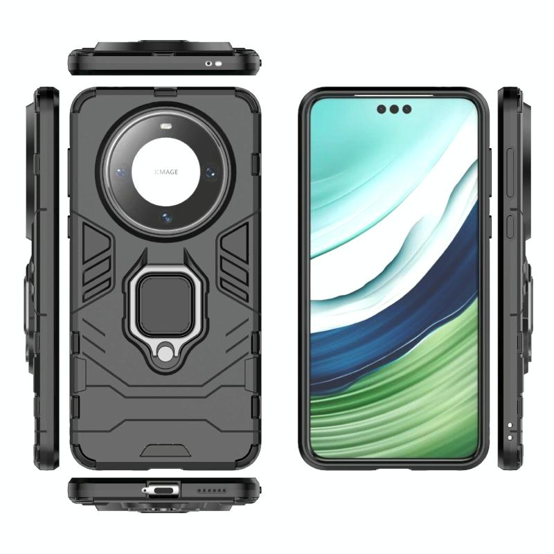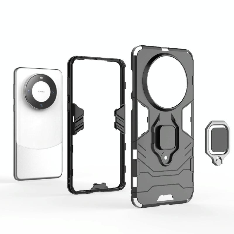For Huawei Mate 60 Pro Shockproof PC + TPU Holder Phone Case(Black)