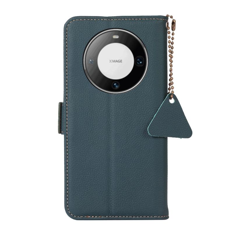 For Huawei Mate 60 Pro Side-Magnetic TJ Genuine Leather RFID Phone Case(Green)