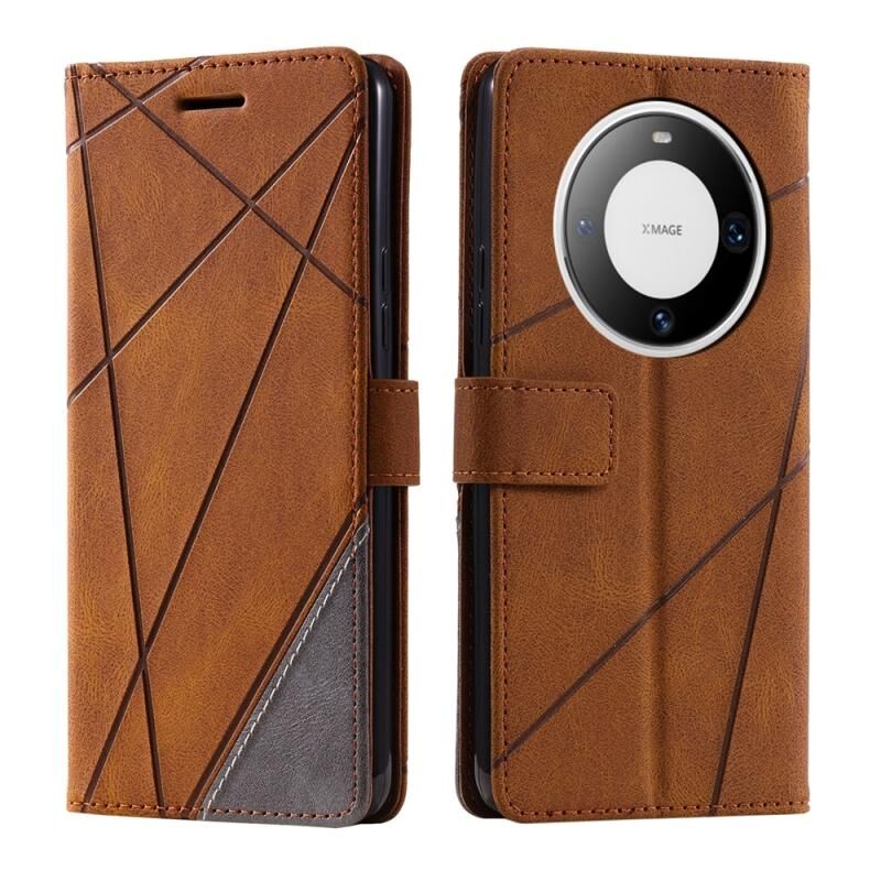 Για το Huawei Mate 60 Pro Skin Feel Splicing οριζόντια Flip δέρμα τηλέφωνο υπόθεση (καφέ)
