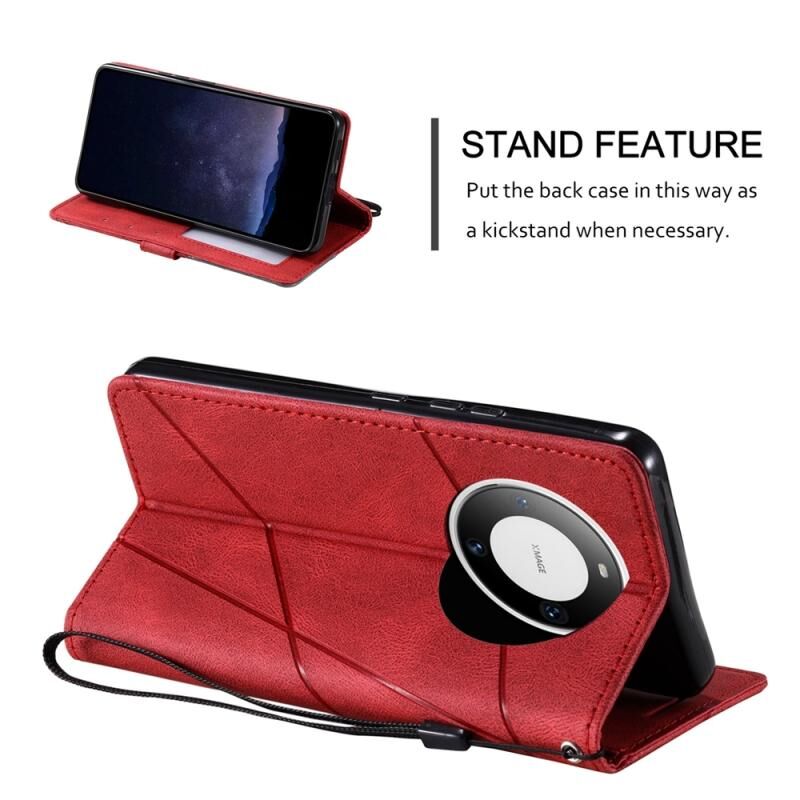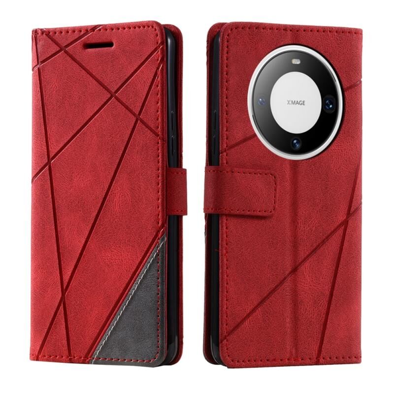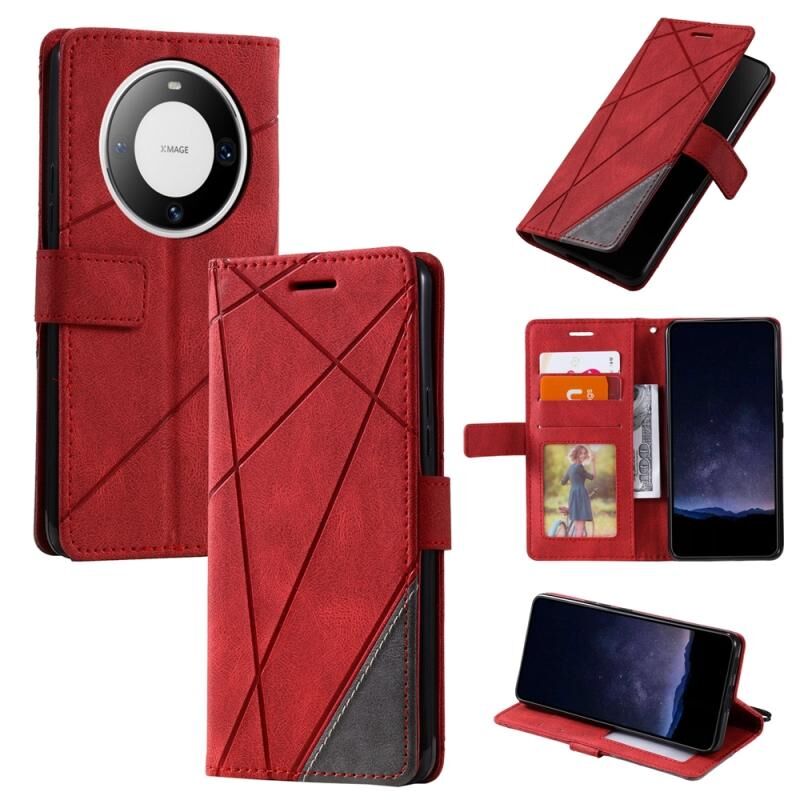 Για το Huawei Mate 60 Pro Skin Feel Splicing οριζόντια Flip δέρμα τηλέφωνο υπόθεση (κόκκινο)