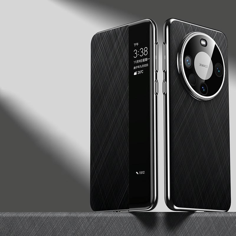 For Huawei Mate 60 Pro Smart View Window Plain Leather Paint PC Phone Case(Black)