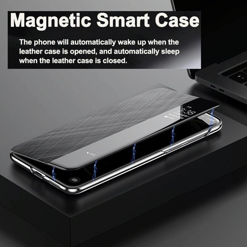 For Huawei Mate 60 Pro Smart View Window Plain Leather Paint PC Phone Case(Cyan-blue)