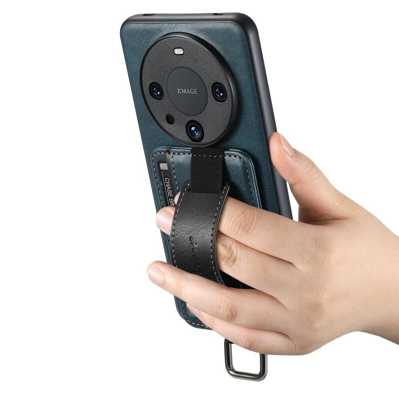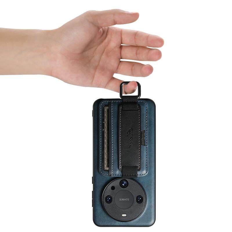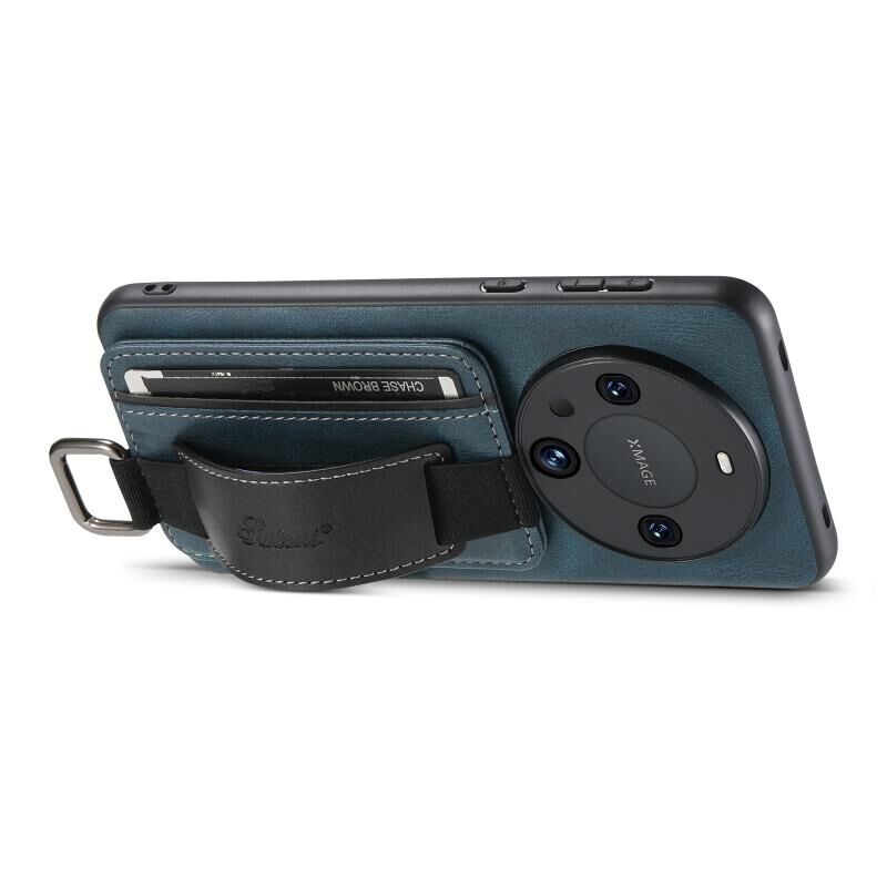 Θήκη τηλεφώνου Huawei Mate 60 Pro Suteni H13 με κάρτες, λουρί καρπού, από PU δέρμα (Μαύρο) (Suteni)