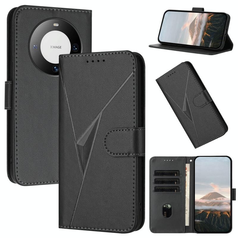 Θήκη τηλεφώνου Huawei Mate 60 Pro από δέρμα με σχέδιο τριγώνου και αγκράφα (Σκούρο Μωβ)