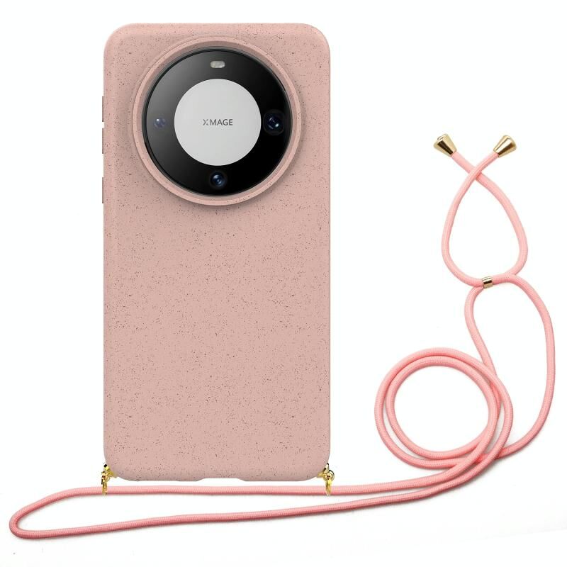 For Huawei Mate 60 Pro Wheat Straw Material + TPU Phone Case with Lanyard(Pink)