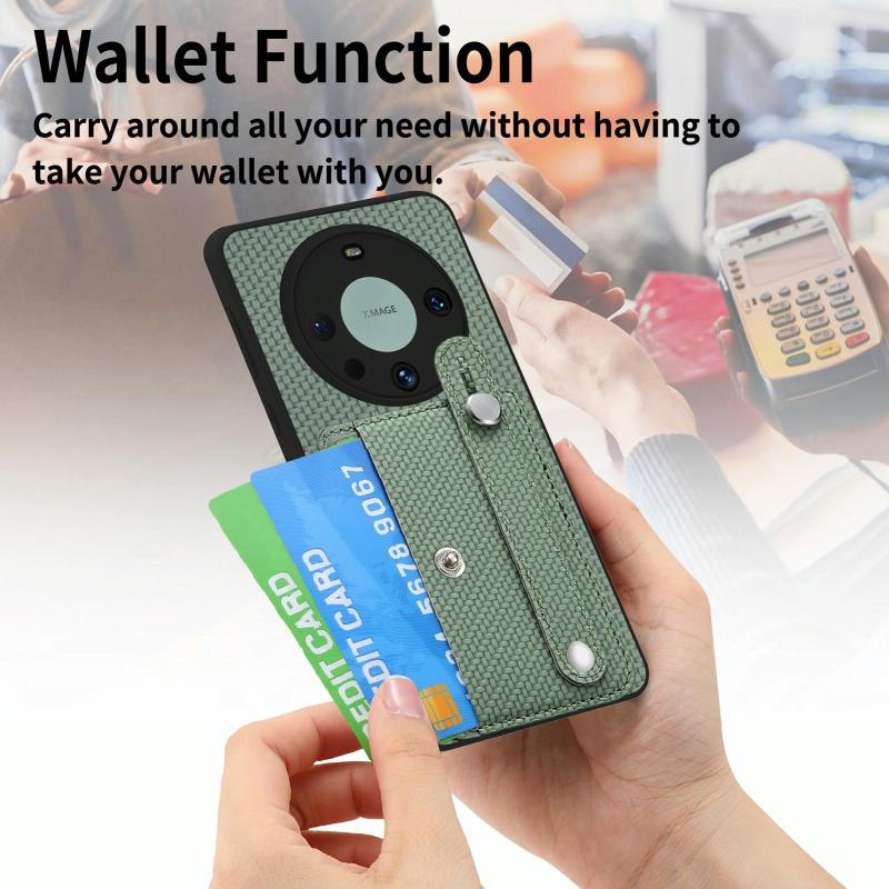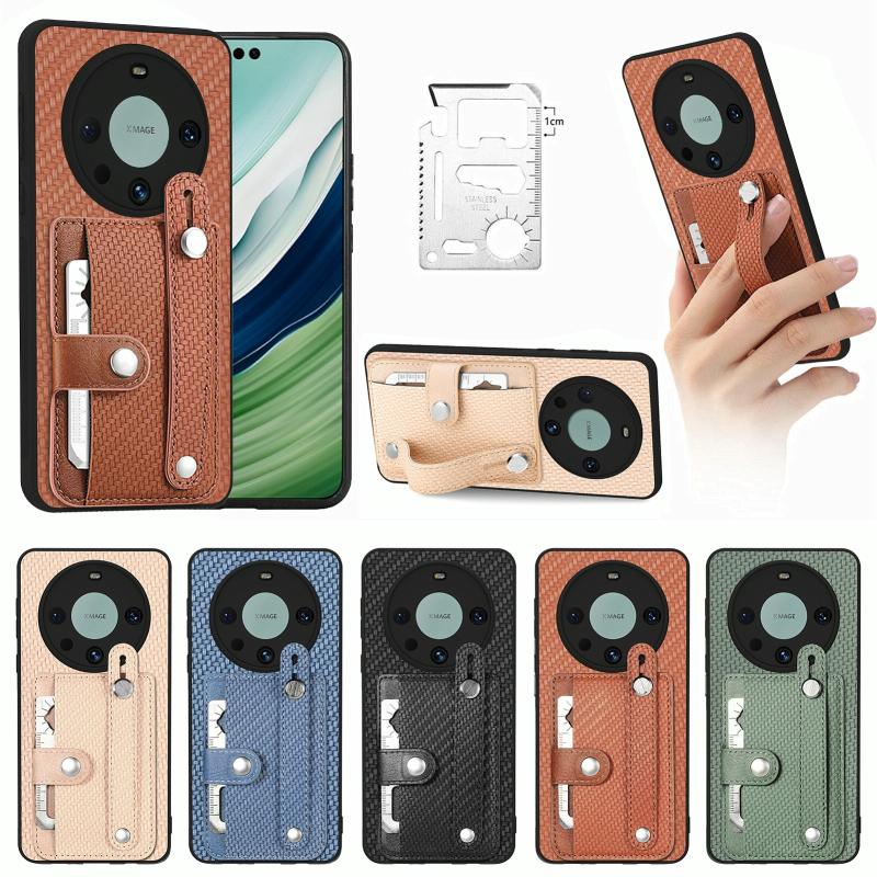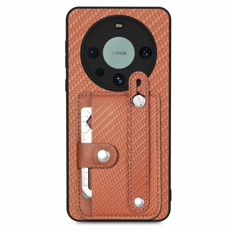 Θήκη κινητού τηλεφώνου για Huawei Mate 60 Pro με βάση καρτών, θήκη χειρός και εργαλείο μαχαιριού (Καφέ)