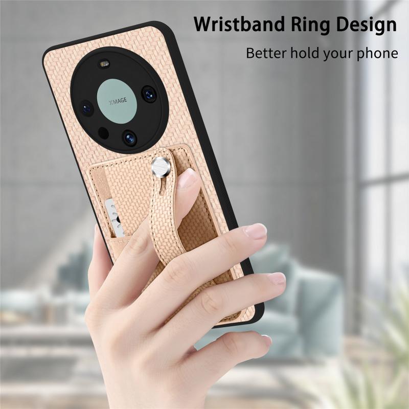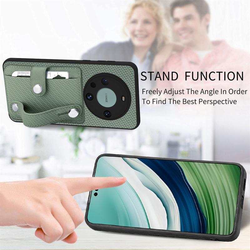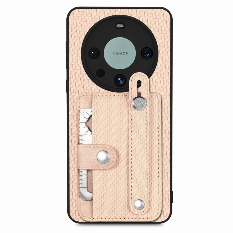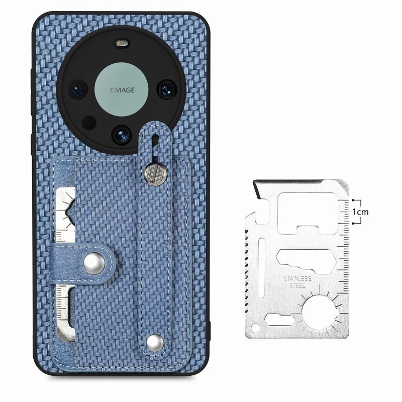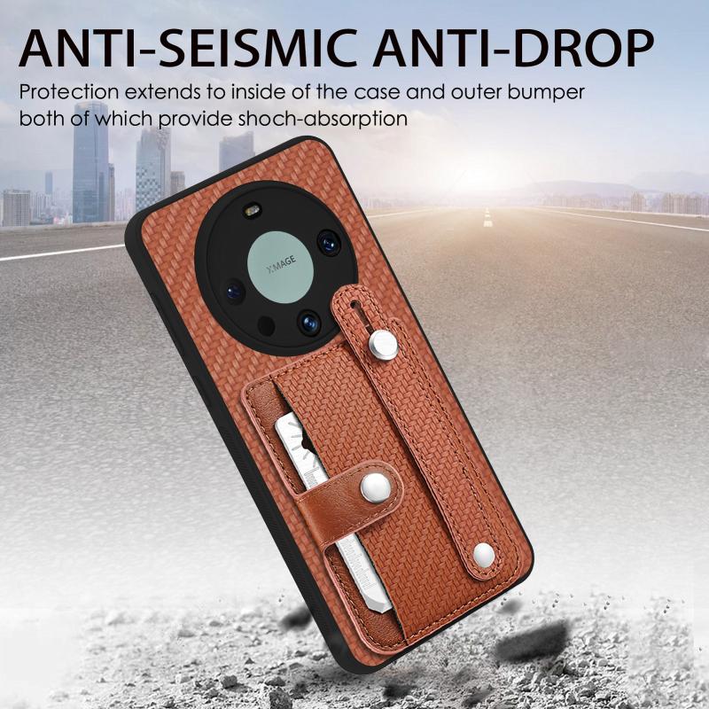 Θήκη κινητού τηλεφώνου για Huawei Mate 60 Pro με βάση καρτών, θήκη χειρός και εργαλείο μαχαιριού (Καφέ)